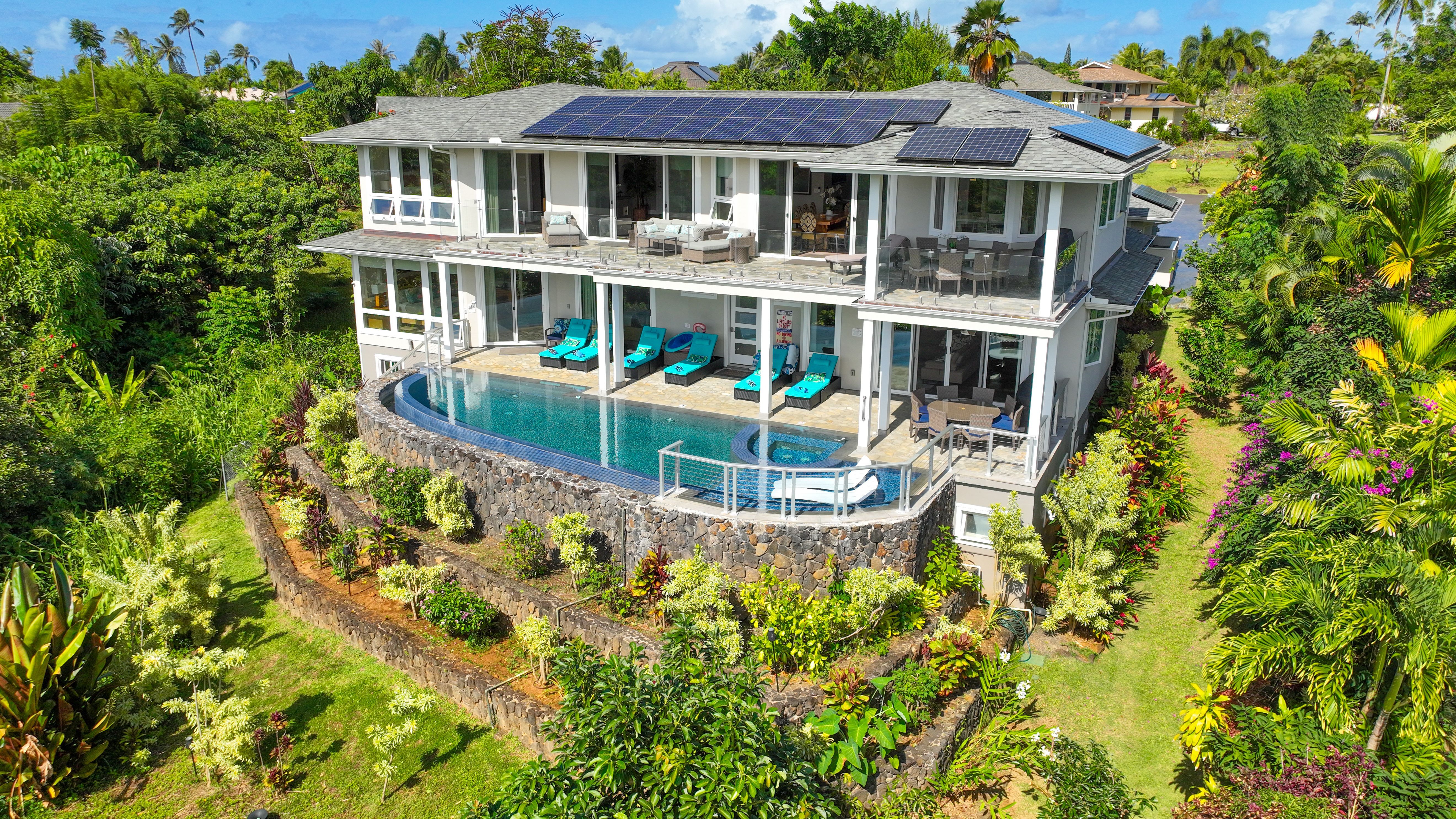 We had a wonderful stay at this gorgeous home in Princeville. The views are unparalleled. The bedrooms are large and well appointed. The kitchen is well stocked. We loved the pool and spa. This was a 50th wedding anniversary celebration for my wife, me, our children and grandchildren. We couldn’t have chosen a better site