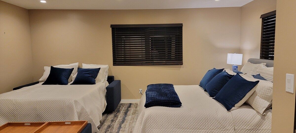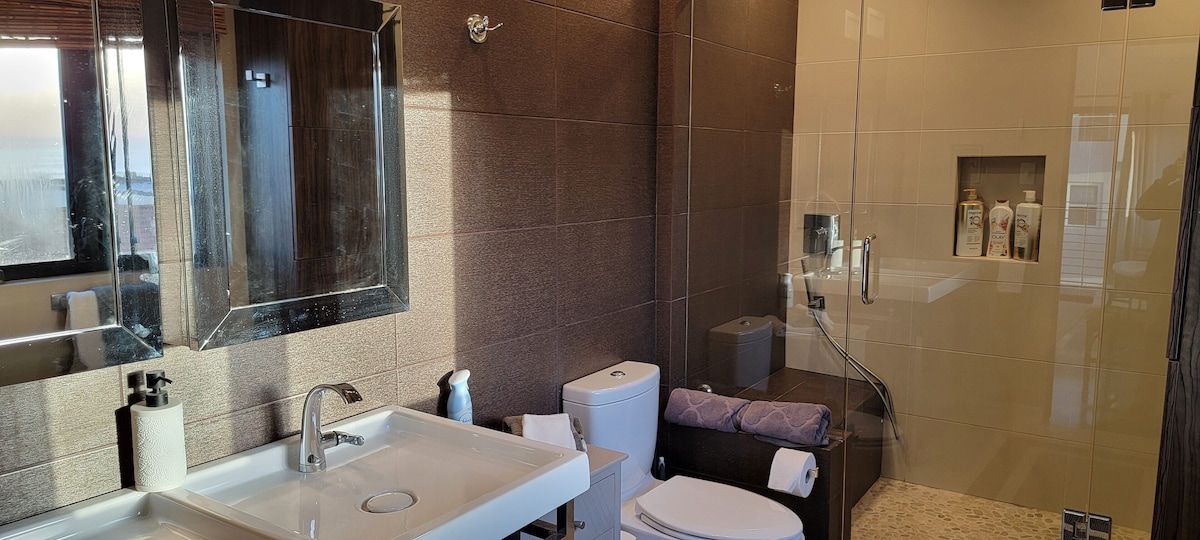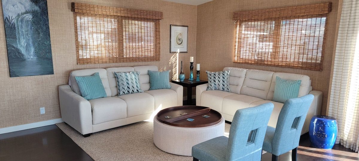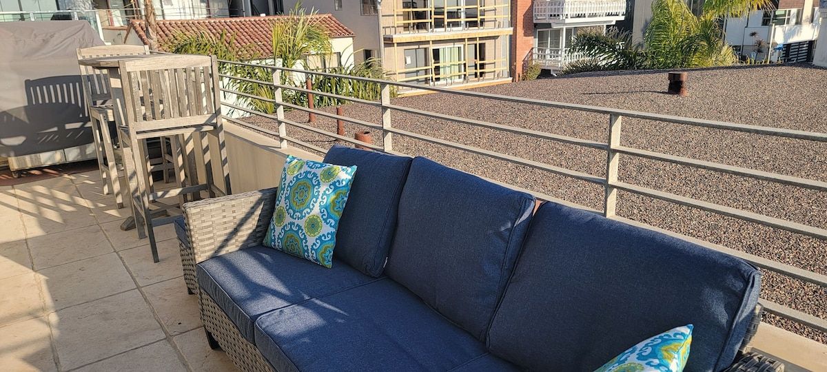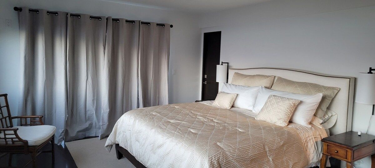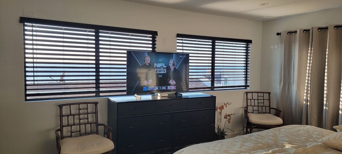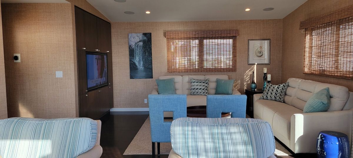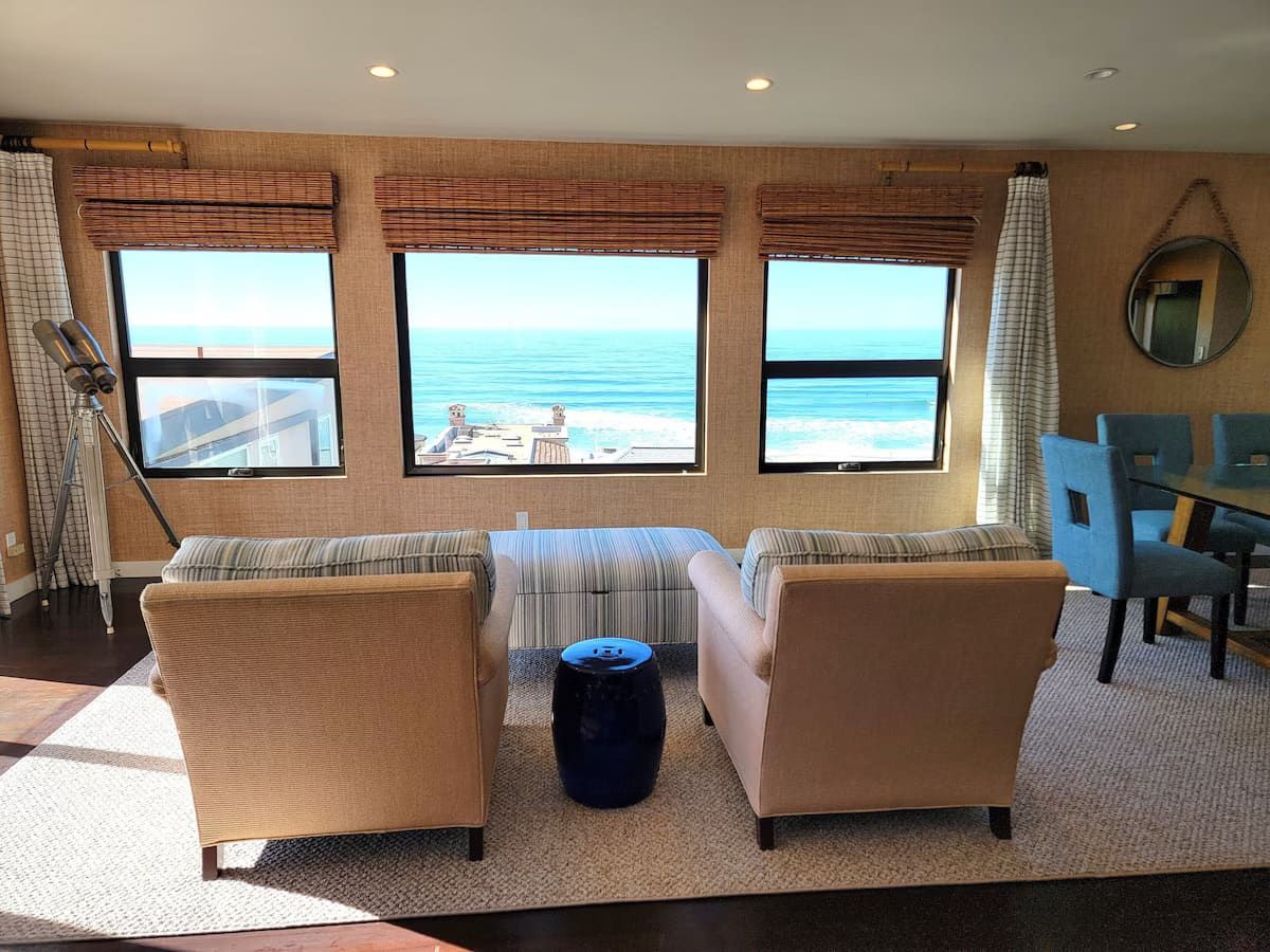Fabulous 4-bedroom 3.5 bath home just two blocks from the Manhattan Beach Strand. Expansive white water sunset views from Manhattan Beach to Santa Monice to Malibu. 26I0 square foot open floorplan. Newly upgraded, including all new sofas, dining, bedroom and bath upgrades with comfy linens and towels. Fully furnished gourmet kitchen with all the amenities for the fussiest cook. ADA accessible with an elevator serving all 3 levels and garage ramp access. Two Master Bedroom Suites! First entry level includes a large master bedroom/sitting room office suite with direct access to a private 2 car garage and 220EV for electric car charging. This Master Suite has a comfy queen sleeper plus the King and can sleep 4. The ocean views begin on the 2nd level with a primary master suite with en-suite bathroom with large dual head walkin shower. 2 additional bedrooms on 2nd level with full bath. Guestroom with a queen bed and another with a 2 twin trundle bed that can convert to a queen. Plus a large separate laundry room is also on this level. Spectacular ocean views are on the 3rd level that features an open concept kitchen with a large serving island, stainless steel appliances, a separate dining area and living room and sitting area - perfect for entertaining or just relaxing enjoying panoramic ocean white water views. Family/Media Room has a comfy pull out queen sleeper and powder room. AC and Hi Speed Wi-Fi is active throughout the house, Smart TVs are in all the rooms, An EV charging station is in the garage. All of this is conveniently located near local restaurants, shops and downtown Manhattan Beach. License #27107807