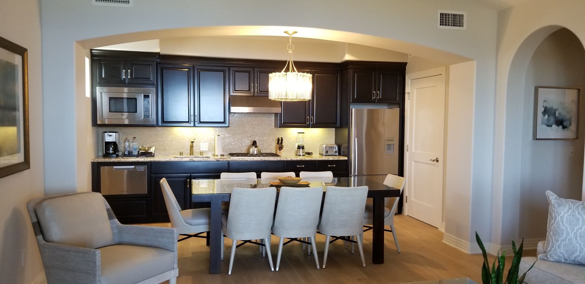 *Fully equipped convenience chef’s kitchen with Viking stainless appliances, refrigerator, freezer, ice maker, microwave/convection oven, 4-burner cooktop, dishwasher and blender!